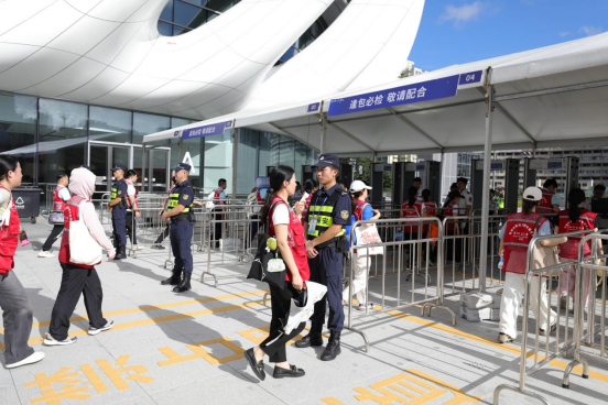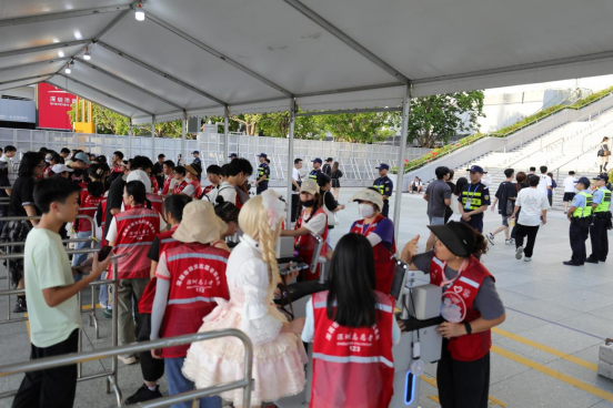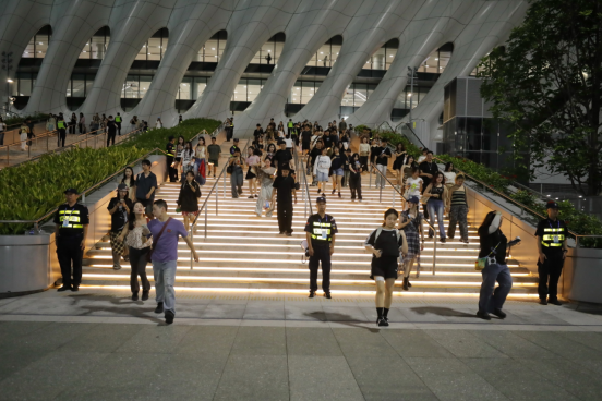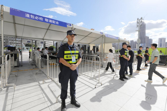 按照公安机关部署,福田保安采取“分区引导、错峰疏散” 原则组织观众离场,提前拆除安检机、检票机、铁马等设备,让观众散场后畅通无阻。